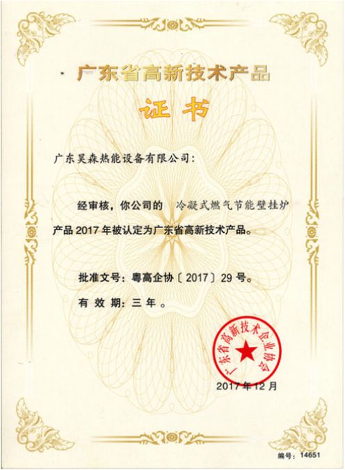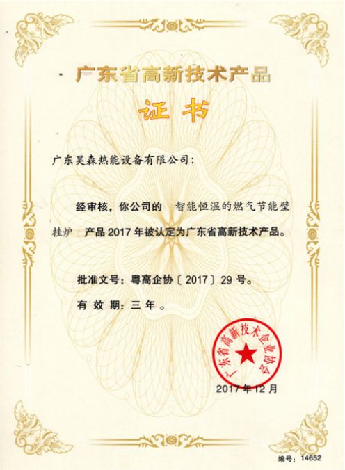 广东省高新手艺产品证书